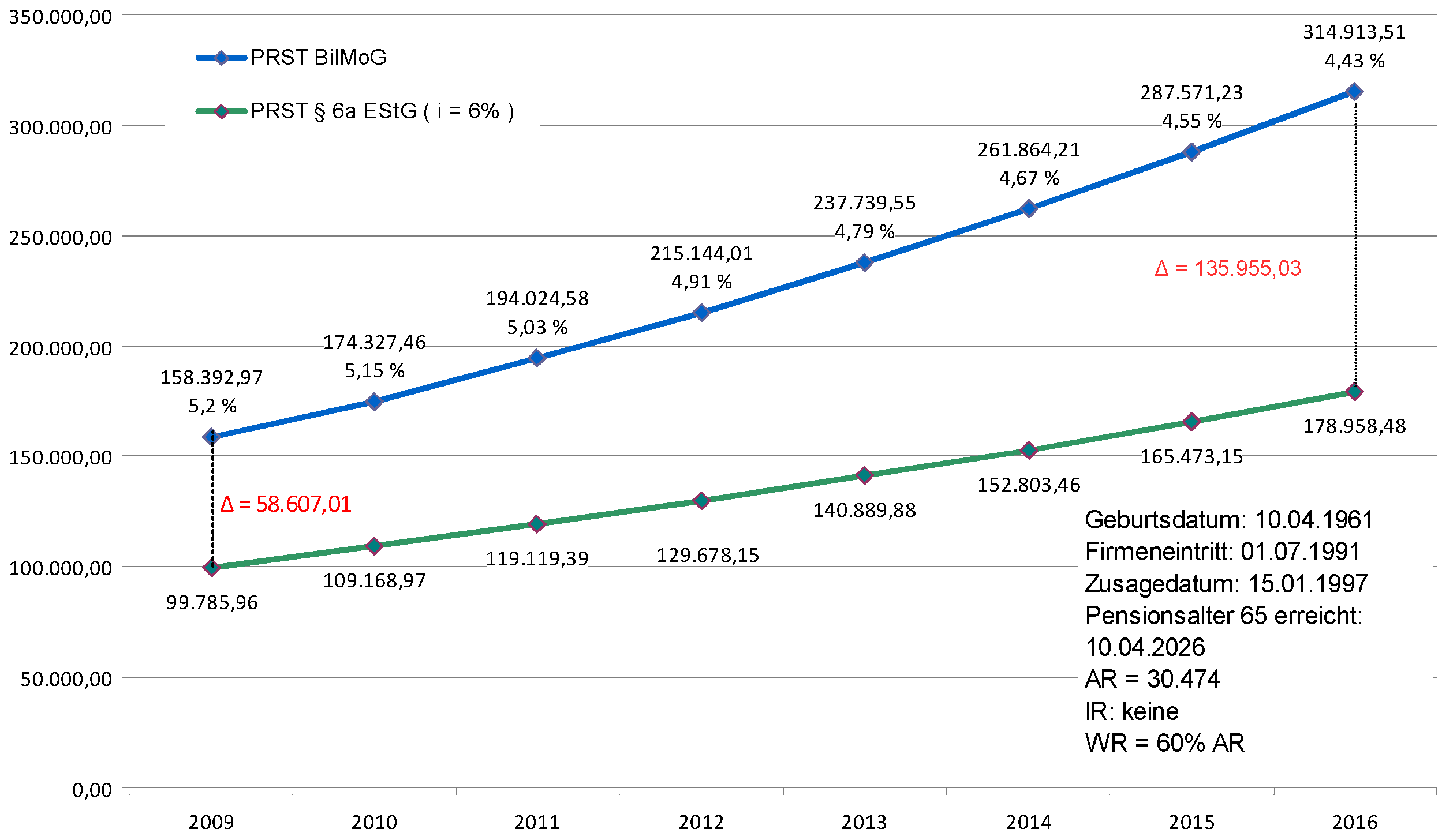 Entwicklung der PRSt BilMoG + § 6a EStG – Simulation